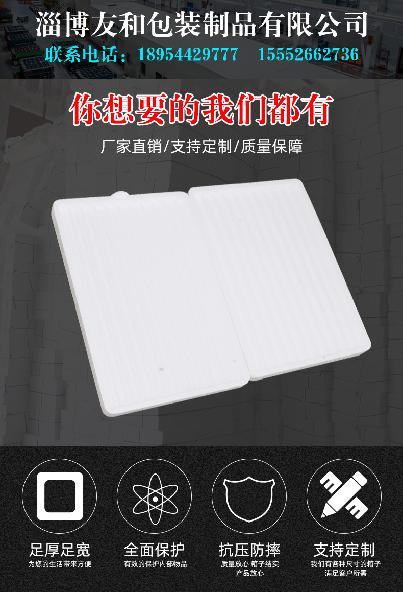 ????淄博友和包裝制品有限公司是專業(yè)的山東泡沫包裝箱加工廠家,本廠主要產(chǎn)品有:泡沫包裝箱,泡沫保鮮箱,水果蔬菜泡沫包裝箱,水果蔬菜泡沫保鮮箱,瓷磚泡沫包裝箱等,產(chǎn)品暢銷全國(guó),深受用戶好評(píng)。泡沫包裝定做可以聯(lián)系我們網(wǎng)站 http://www.landrill.cn/ 上電話,我們會(huì)第一時(shí)間跟您聯(lián)系。